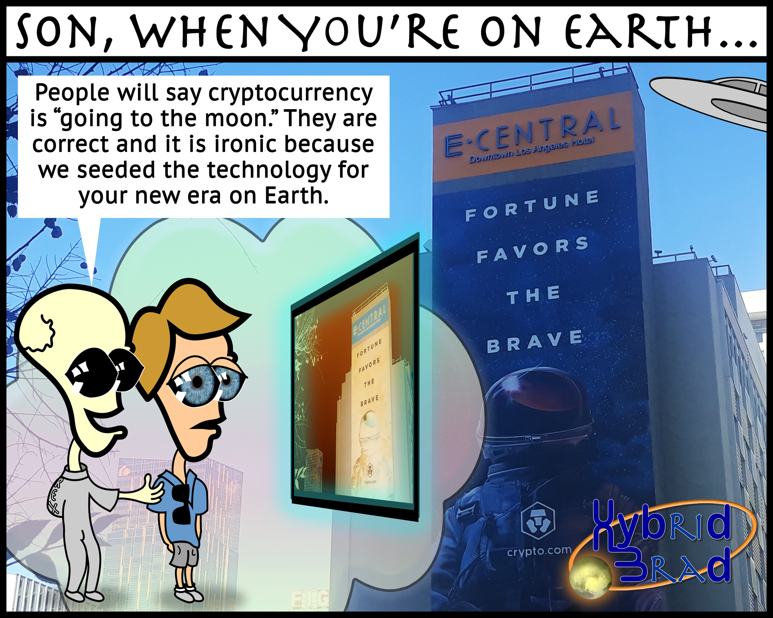 Hybrid Brad is inspired by science fiction stories about intelligent life on other planets and in outer space. Although the UFO topic was fringe and ridiculed for decades, recently governments have come forward to proclaim their existence and mystery. Testimonials of abduction experiencers point to genetic manipulation and the creation of an Alien plus Human hybrid race.